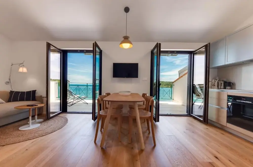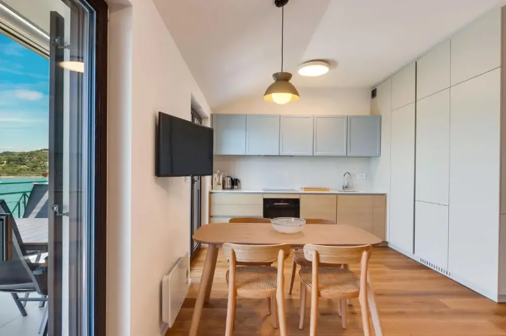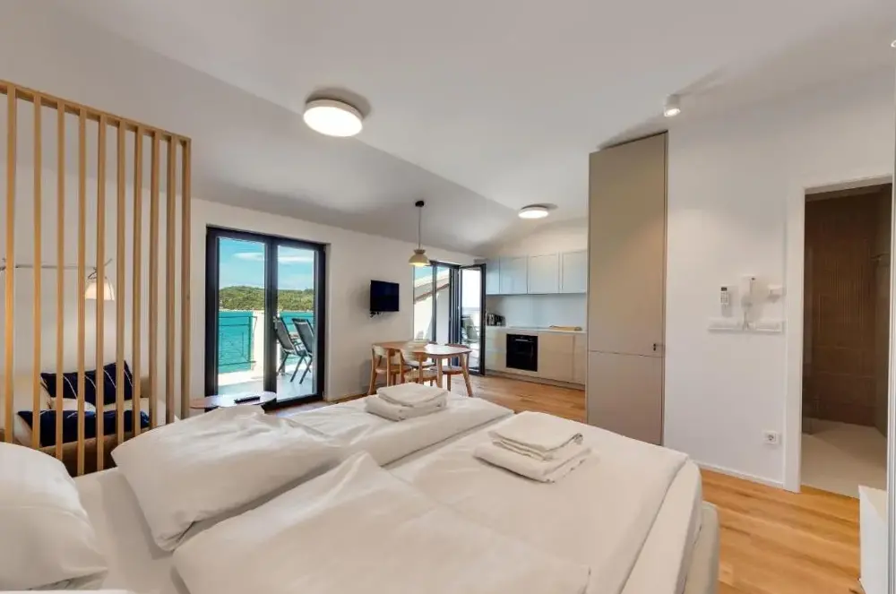 Namestitev je popolnoma nova, pred kratkim prenovljena. Vse je tam in zelo urejeno. Komunikacija z gostiteljem je potekala zelo gladko. Tudi lokacija je čudovita, z balkona (z baldahinom) pogled na zaliv, čudovito je zajtrkovati tukaj. Tudi postelje so udobne. Skratka zelo priporočljivo za tiste, ki imate radi mir in malo udobja.